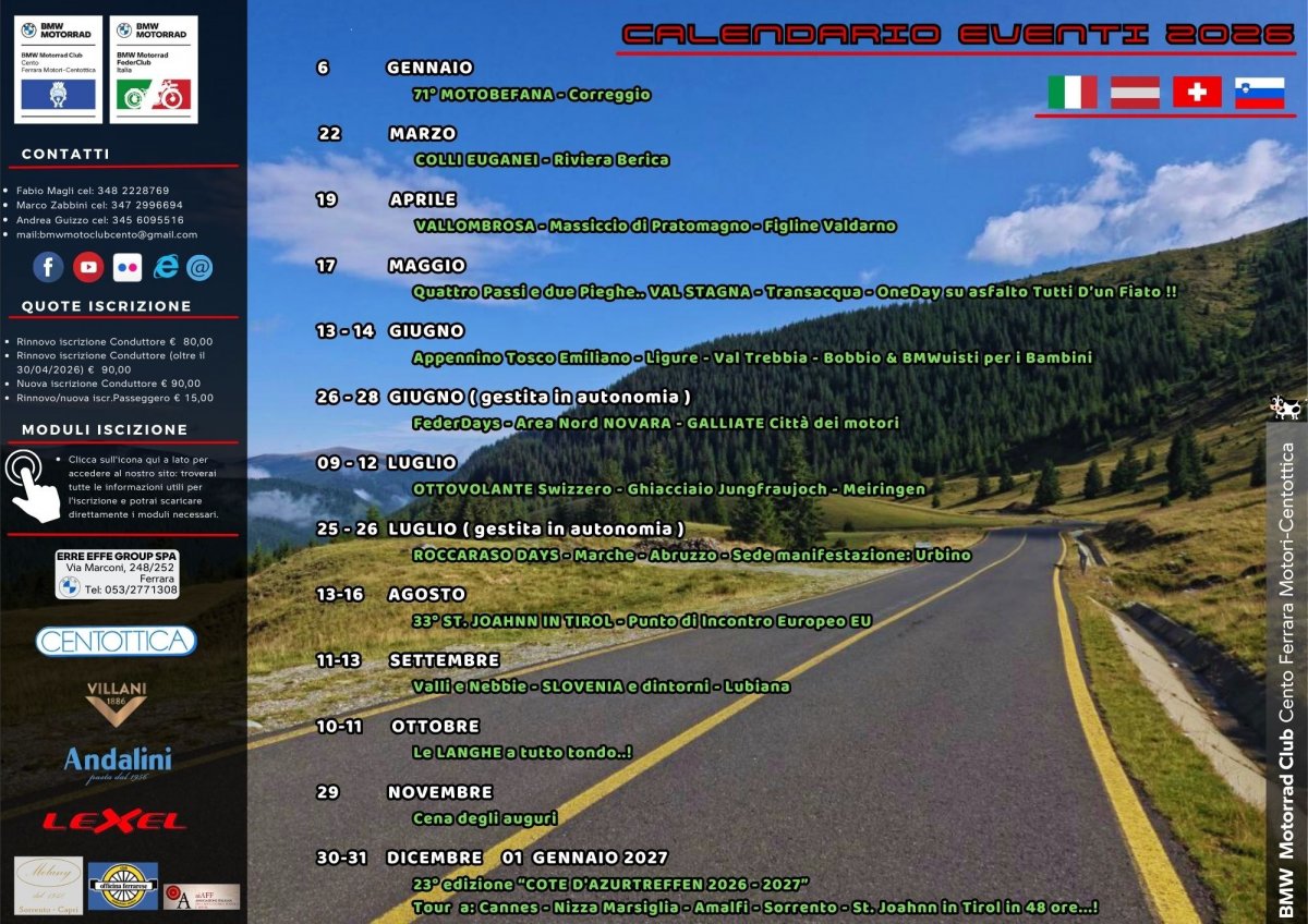 Moto-giri che il Club organizzerà nel corso del 2026.